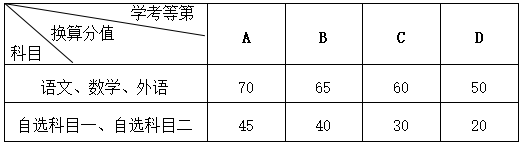 1.高中学考选择5个科目(语文、数学、外语、自选科目一、自选科目二)进行成绩折算,不同等第换算成相应分值。考生需在规定的查分时间确认折算成绩。10门学考科目成绩不全的考生不能报名,高中学考等第以浙江省教育考试院提供的成绩为准,换算方式如下: