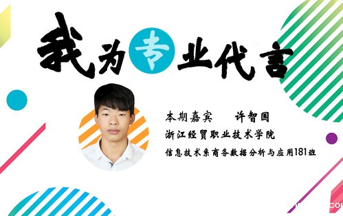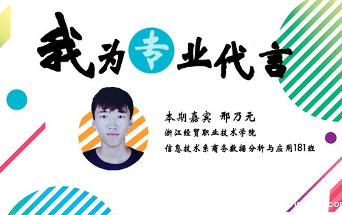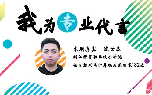 在中学时,我就对计算机产生了浓厚的兴趣,也会在课余时间自己研究关于计算机编程方面的知识。了解到经贸的计算机应用技术有很好的师资力量,相比其他高职有着明显优势。通过一年半的专业课学习,我学到了更多的知识,也有了很多的锻炼机会,参加并获得了“建行杯”第五届浙江省“互联网+”大学生创新创业大赛银奖,浙江省第七届职业院校“挑战杯”创新创效竞赛二等奖以及浙江省“赢动教育·悦为电商杯”第十四届大学生电子商务竞赛技术类三等奖,大赛让我对于未来的道路更加有信心。