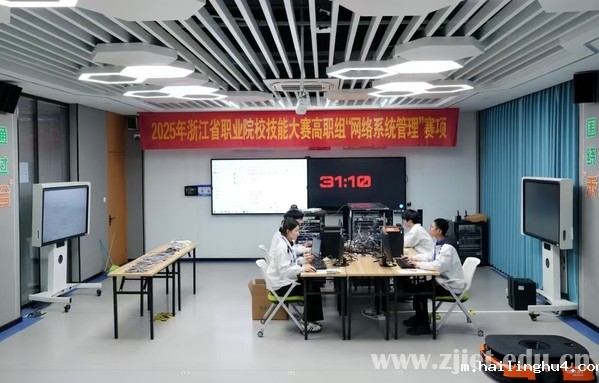 3月30日至4月1日,由浙江省高职院校能力大赛组委会主办、我校承办的2025年浙江省职业院校技能大赛高职组“网络系统管理”赛项圆满落幕。我校计算机网络技术专业的盛杭德、柯蕊怡、唐锦鸿、钟元鸣组成的代表队表现突出,获金奖第一名。